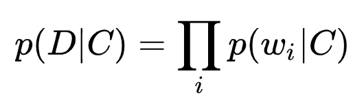 그래서 우리는 C 클래스가 주어졌을때 D라는 문서가 나타날 확률을 아래와 같이 공식으로 만들 수 있다.