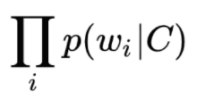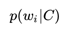 p 는 확률을 말하고, w는 단어, i는 순서를 표시하고, C는 클래스를 말한다. 즉 풀어서 말하면 C라는 클래스에서 단어 wi가 나타날 확률이다. 실제 계산하는 방법은, 모든 C클래스에 속하는 단어의 출현 횟수 중에서 wi가 얼마나 나타났는지 계산하면 된다.(짧게 말하면, C클래스에 나타난 wi 출현 건수 / C클래스에 나타난 모든 단어 출현수 = wi 가 C클래스라는 조건에서 나타날 확률)