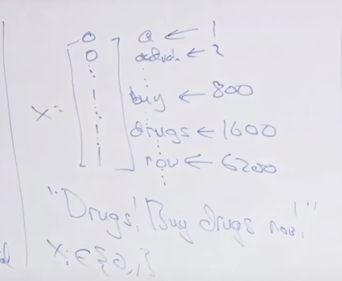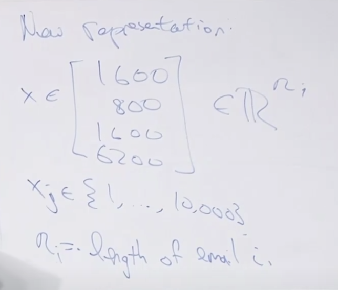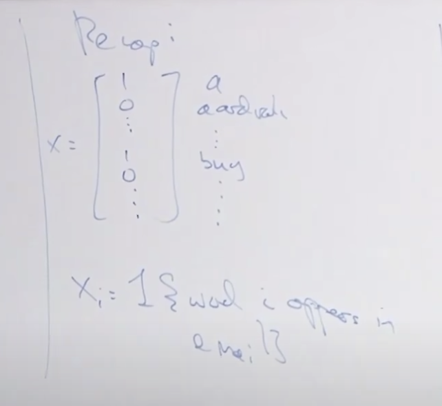 텍스트를 사전에 정의된 순서에 따라 있는지 없는지를 표시하는 방법(원핫 인코딩)으로 하나의 문서(메일 또는 메시지)를 표시할 수 있습니다. 그래서 X에 있는 각 단어가 이메일에서 발견될 확률을 계산하여 전체 X의 확률을 구했습니다.