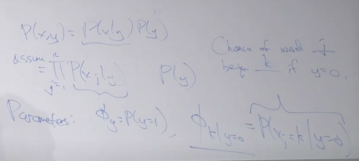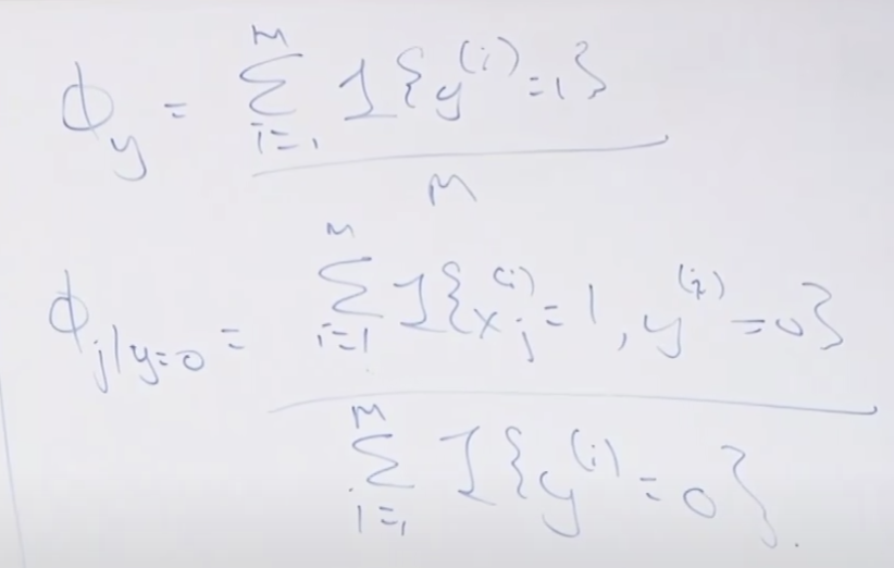필요한 파라메타들은 p(y=1) = Φy 1(스팸)인 메일이 나올 확률