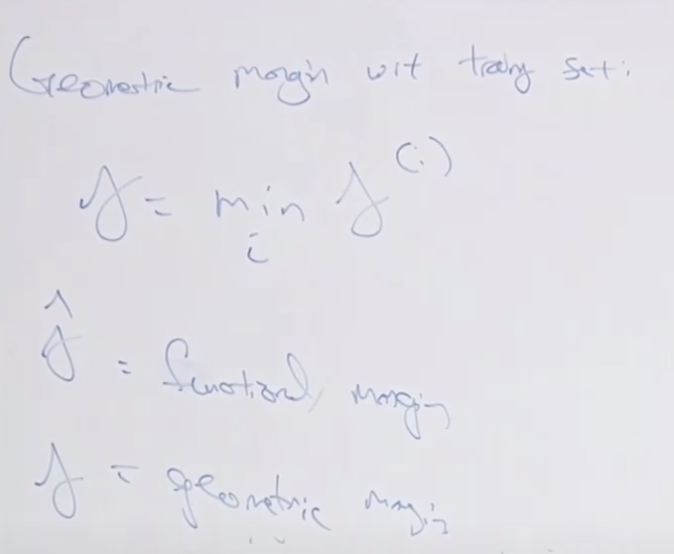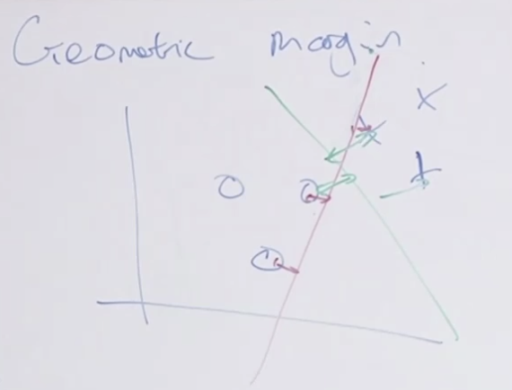 Geometric margin 을 아래와 같이 구할 수 있습니다. 유클리디안 거리를 가지고 선과 점의 거리를 계산할 수 있겠네요