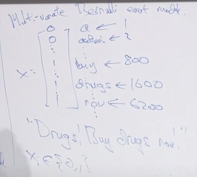 그래서 전에 사전을 기준으로 존재여부 (0,1)을 표시했던 방법을 Multi-variate Bernoulli Event Model이라고 합니다.