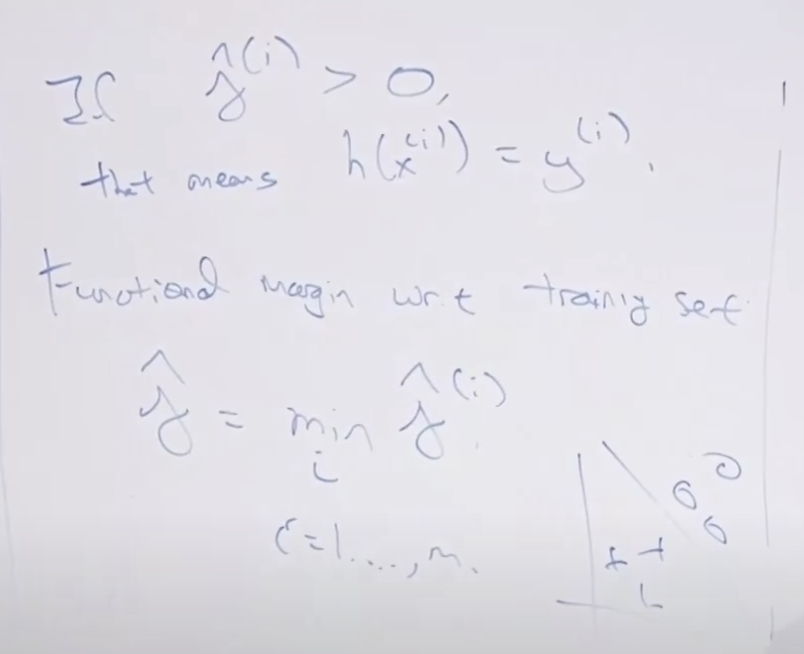 하나의 하이퍼플레인(선) 을 결정하는 functional margin 계산 방벙을 설명합니다.