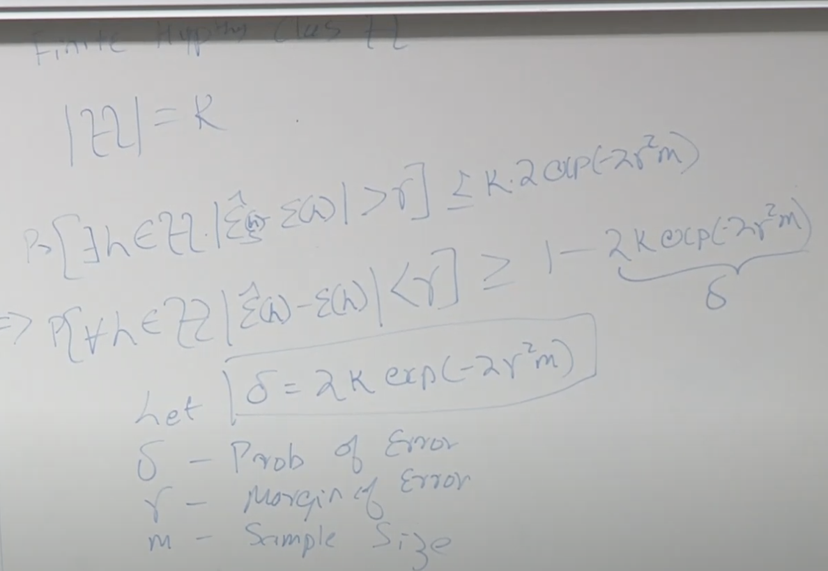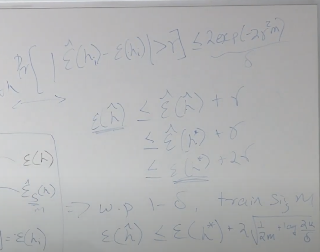 균등수렴과 Hoeffding 방법을 이용하면 아래와 같이 전체 가설에 대해서 공식을 만들 수 있습니다.