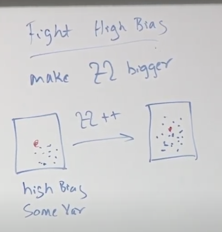바이어스를 줄이는 방법은 H를 크게 / 넓게 만드는 것입니다. 또는 아예 다른 알고리즘을 사용하는 것도 좋은 시도가 될 수 있겠습니다.
