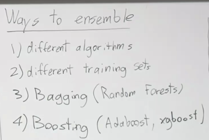 이처럼 정확도를 높이기 위한 방법중 하나가 앙상블 ensemble이며 앙상블에는 다양한 방법이 있습니다.
