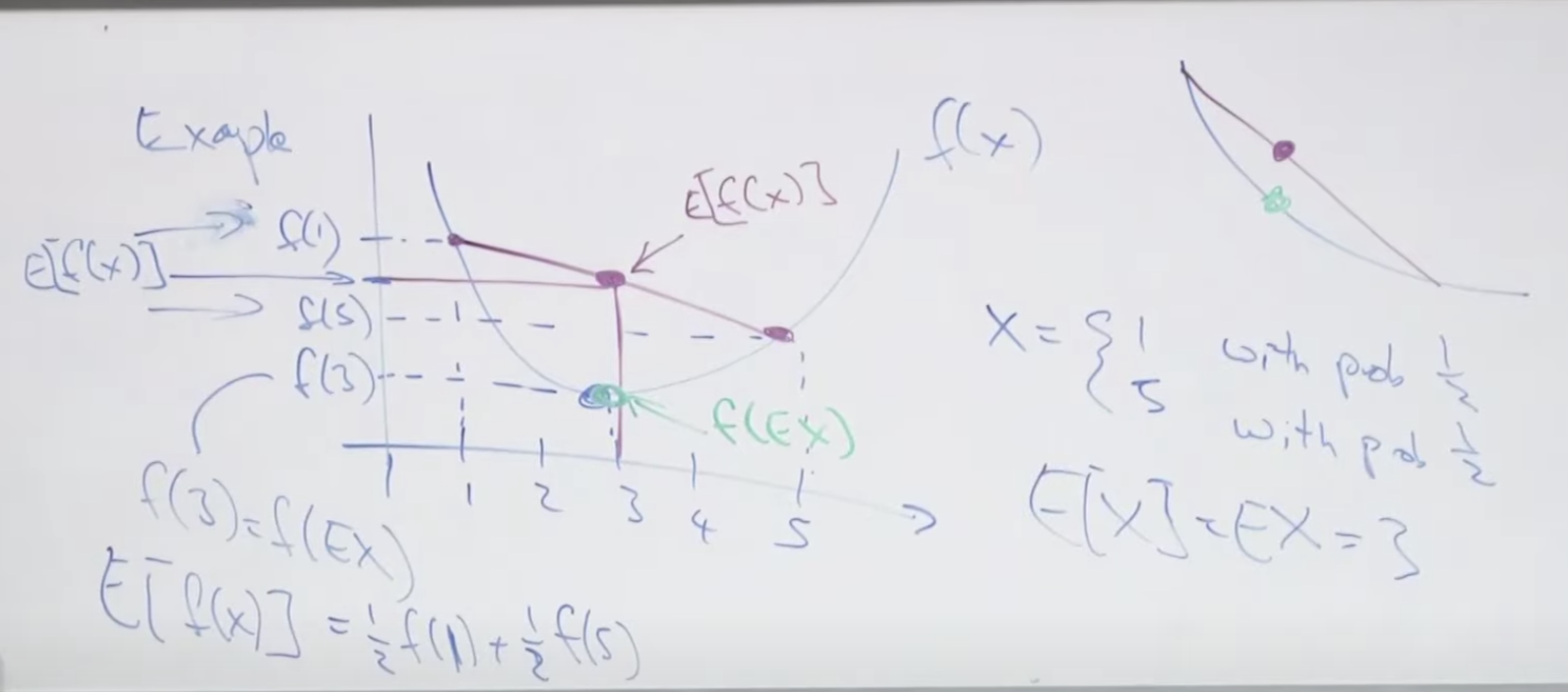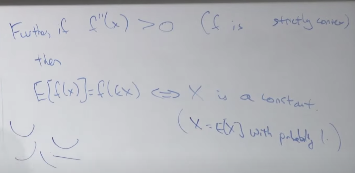 함수 f를 아래로 볼록한 함수(Convex function)이라고 하고 x를 임의의 값이라고 할때, 공식 f(EX) <= E[f(x)] 를 만족합니다.