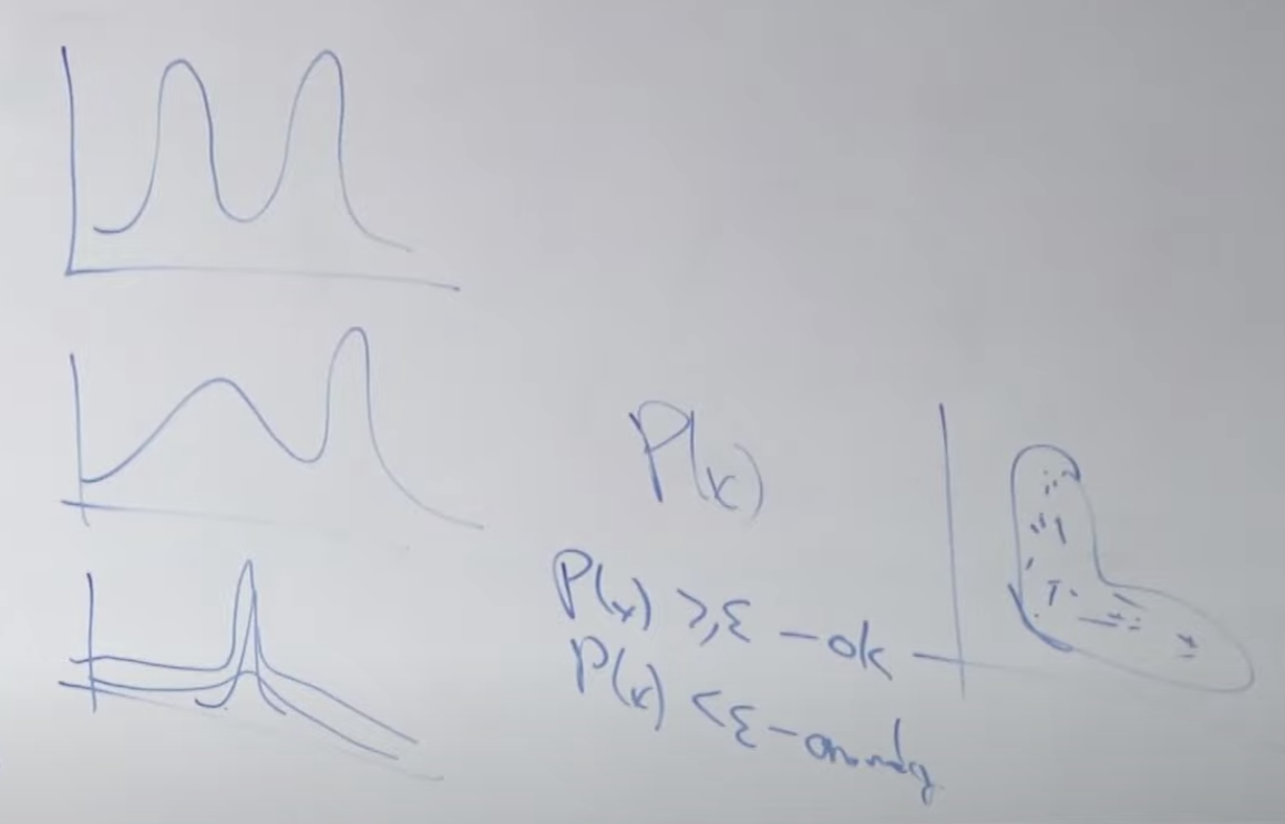 이러한 단계를 거처 기대값을 최대로 하는, 여러개의 분포가 합쳐지는 하나의 분포 곡선을 만들 수 있습니다. 이러한 곡선은 아래처럼 다양합니다. 이로써 찾은 함수를 통해 입력값 x를 실행했을때 결과 확률값이 특정 기준(입실론) 보다 크거나 같으면 정상적인 데이터이고 확률값이 작으면 이상탐지(Anomaly)로 판단할 수 있습니다.