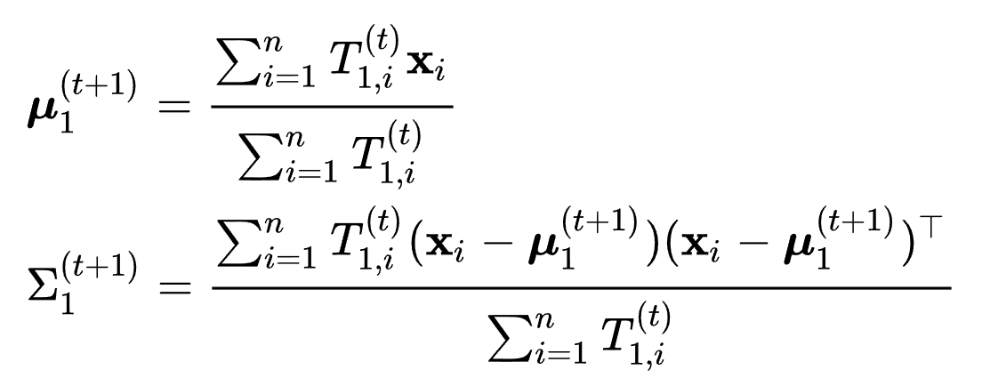 이러한 방법으로 여러개의 다변량 분포가 혼합되어 있는 경우 어느 분포에서 추출될 가능성이 높은지를 알 수 있습니다.