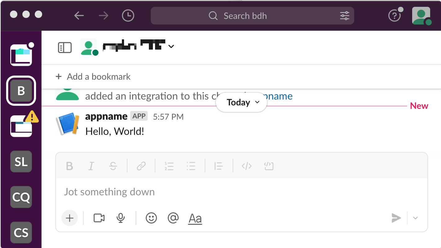 그러면 슬랙을 통해 아래와 같이 새로 작성된 메시지를 볼 수 있습니다.