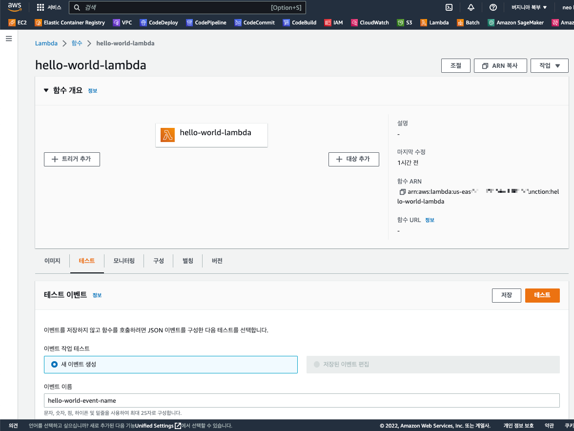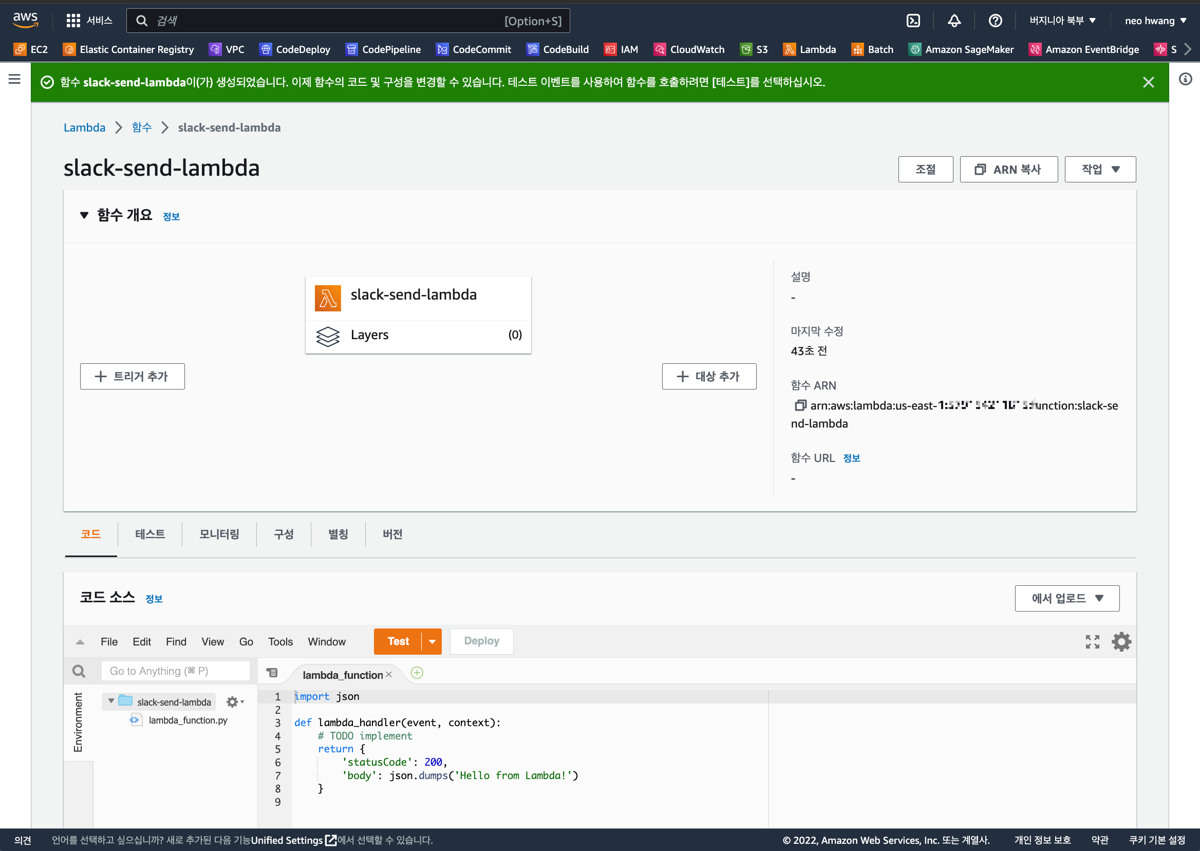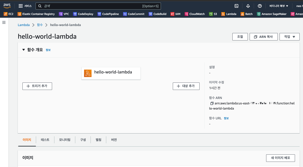함수가 생성되면 아래와 같은 화면이 보입니다.