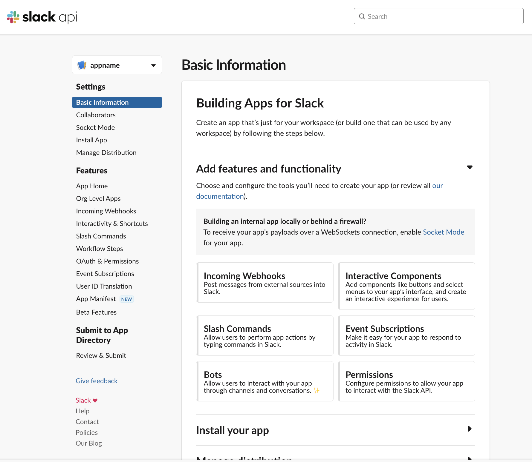 이전 작업까지해서 슬랙 앱 생성이 완료되었습니다. 이제부터 앱과 워크 스페이스 채널을 연결합니다.