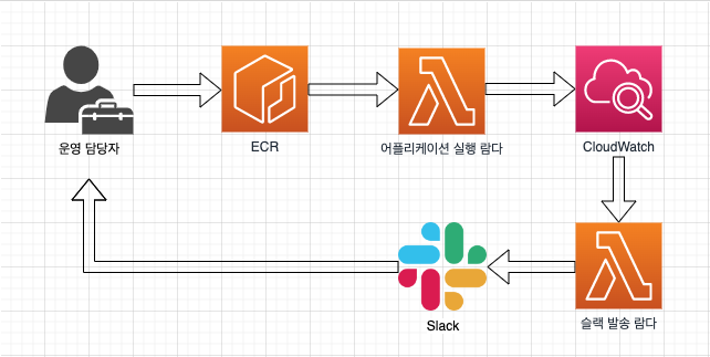 일반적으로 어플리케이션 서비스나 기능을 배포하기 전에 단위/통합 테스트 등을 통해 개발 내용이 잘 동작하는 지를 확인하고 배포합니다. 그리고 배포한 이후에도 해당 동작이 잘동작하고 있는지 안되고 있는지에 대한 모니터링이 필요합니다. 물론 AWS의 CloudWatch를 사용하여 웹 콘솔화면에서 동작 결과를 로그로 조회하거나, AmazonSNS 같은 서비스를 통해서 결과 내용을 메일로 받아 볼 수 있게 구현할 수도 있습니다. 하지만 모니터링 목적에 따라 지표를 만들어서 알림을 설정할 필요가 있기도 하고(CW에서도 가능) 보다 복잡한 조건에 해당하는 경우를 판단해서 알림을 받고 싶은 경우가 있습니다. 예를 들면 로그 중에서 특정 서비스 요청 메시지가 미리정한 횟수보다 많아지거나 또는 특정 서비스 이용 패턴이 발견되거나, 또는 두가지 상황 모두가 발생했을 경우 등의, 조금은 복잡한 논리적 판단이 필요한 경우가 되겠습니다. 이런 경우에는 단순히 CloudWatch 를 이용하기 어려운 경우가 있습니다. 이처럼 상대적으로 복잡한 판단이나 로그 내용을 검토해서 알림 여부를 결정해야 한다면 프로그래밍 적인 처리가 필요합니다. 이럴때 우리는 CloudWatch Logs Group에 Labmda 구독 필터를 만들어서 이러한 로직 처리를 개발 할 수 있습니다. 그리고 이 람다에서 Slack Webhook를 연결하면 로그 또는 처리 내용을 메시지로 받을 수 있습니다.