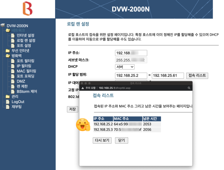 로컬 IP 주소는 이전 페이지인 접속 리스트에 나왔던 숫자를 입력합니다.