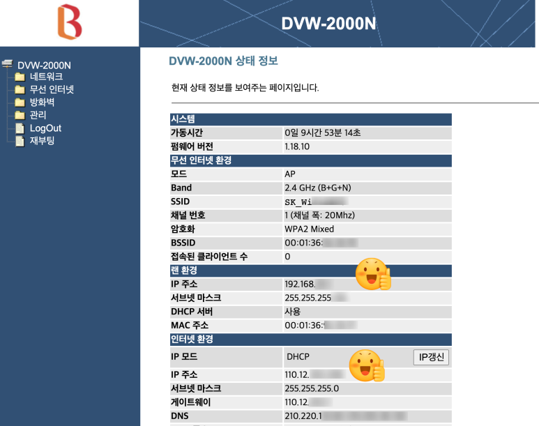 먼저 SKB 공유기를 설정합니다.
