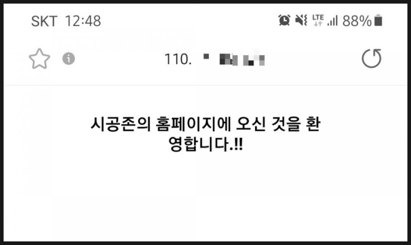 포트 포워딩때 사용한 외부IP와 포트번호를 이용하여 휴대폰 브라우저에서 접속해 봅니다.