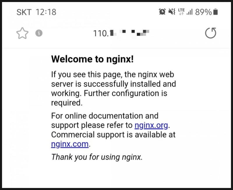 로컬 PC에서 확인했을때 잘 접속되는지를 확인했으니 이제 포트 포워딩한 주소로 잘 접속되는지 확인합니다.