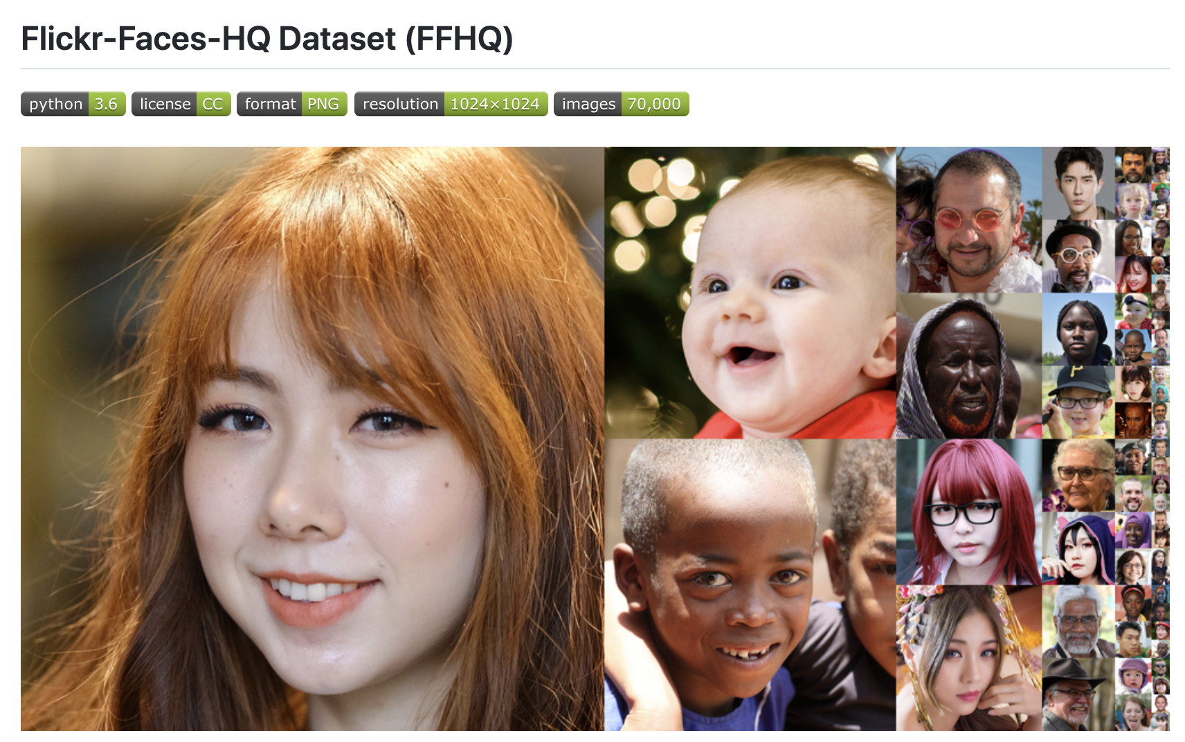 Size: The dataset consists of 70,000 high-quality PNG images at 1024×1024 resolution and contains considerable variation in terms of age, ethnicity and image background.