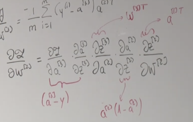 업데이트를 할때 미분을 하는데 이때 아웃풋에 제일 가까운 레이어(w[3]) 부터 미분하는 것이 계산하기 좋다는 것 까지 지난 시간에 이야기 했습니다.