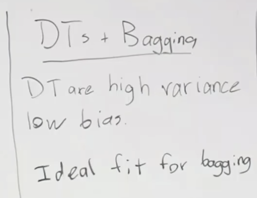 의사결정트리는 높은 분산에 낮은 바이어스를 가지고 있기 때문에 배깅과 매우 잘 맞습니다. 배깅이 분산을 낮추어 주기 때문입니다.