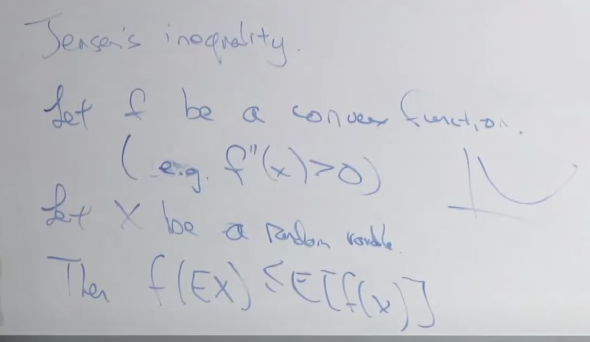 함수 f를 아래로 볼록한 함수(Convex function)이라고 하고 x를 임의의 값이라고 할때, 공식 f(EX) <= E[f(x)] 를 만족합니다.