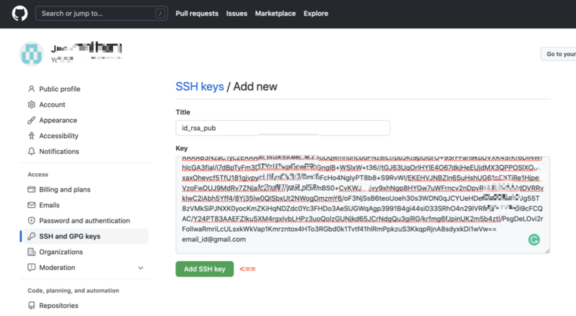 3. public key를 git hub에 등록