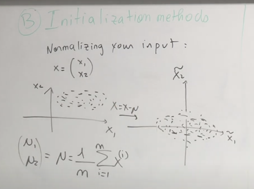 두번째로는 초기화 방법에 대해서 알아보겠습니다. 아래 이미지는 평균으로 정규화할 경우 변화되는 내용을 설명합니다.